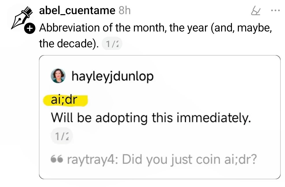 In case you aren’t chronically online, tl;dr = “too long, didn’t read” and ai; dr = “AI, didn’t read.”